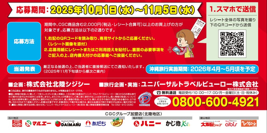 10月 全国CGCグループお客様感謝フェア 実施中(応募期間11/5まで)