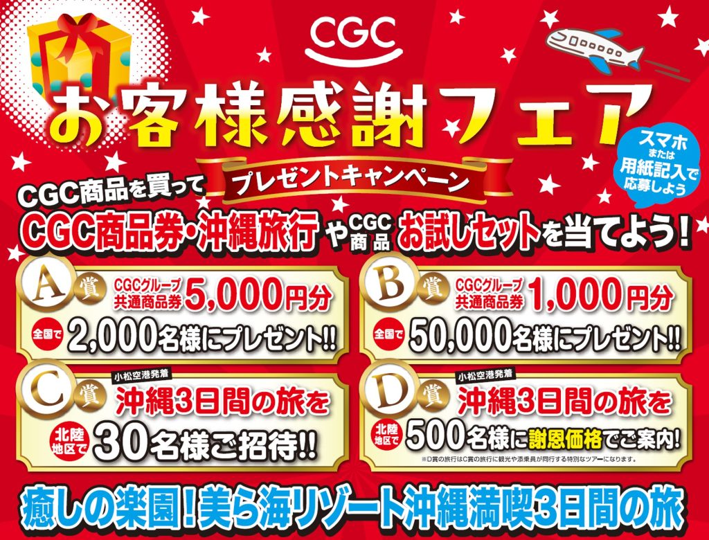 「CGC商品お試しセット」も抽選で当たります! 詳しくは各店舗でご確認ください!